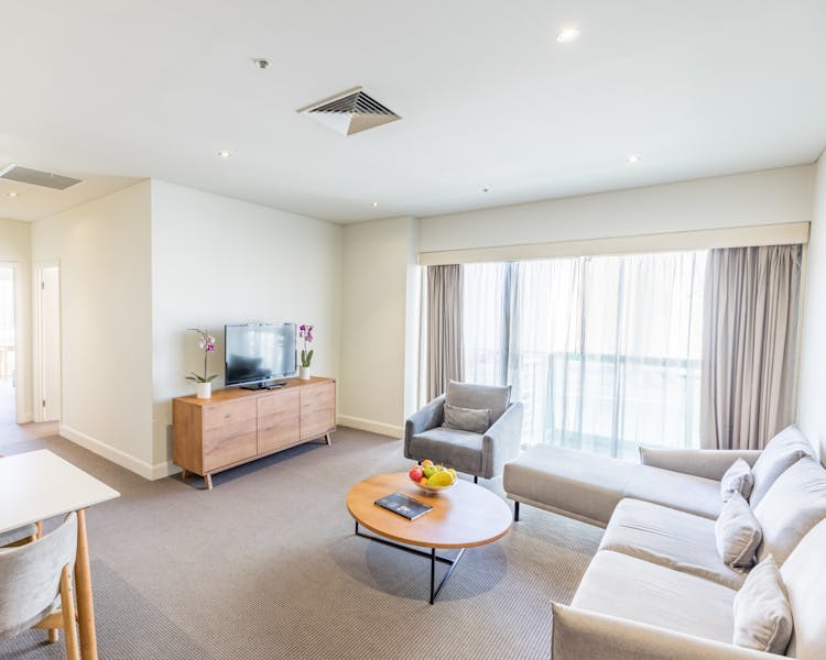 Premier choice for hotel accommodation, offering a unique blend of modern luxury, an exceptional location, and personalised service. Each room is thoughtfully designed with contemporary furnishings, high-speed Wi-Fi, fully equipped kitchenettes or kitchens, laundry facilities, and private balconies with breathtaking views of either the city skyline or the lush Royal Botanic Gardens. For those looking for the best long-stay accommodation in Melbourne or a comfortable corporate hotel in Melbourne, Seasons Botanic Gardens is the perfect place to call home.