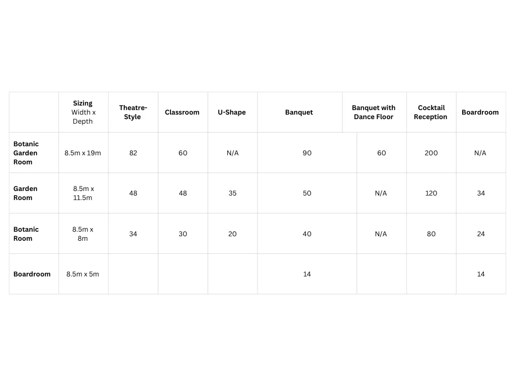 Seasons Botanic Gardens Melbourne offers a range of versatile event spaces designed to accommodate meetings, conferences, corporate functions and private events. With flexible room configurations, modern facilities and a central Melbourne location near the Royal Botanic Gardens, our venues provide a seamless setting for events of all sizes.
