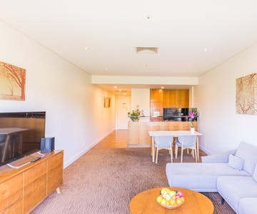 Our 60 sqm One-Bedroom Executive Apartments offer a spacious and stylish retreat with a generous living area. Each apartment features a luxurious king-size bed, private ensuite, separate lounge, fully equipped kitchen, and convenient laundry facilities. Step out onto your balcony or enjoy garden views from the bedroom and take in the tranquil surroundings just moments from the Royal Botanic Gardens, the Yarra River, and nearby Melbourne’s vibrant Southbank precinct.
