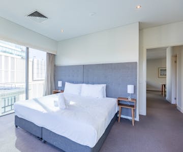 Our Two-Bedroom Apartments offer a spacious and inviting lounge area, complete with full kitchen facilities and in-room laundry for added convenience. The large master bedroom features a king-size bed that can be split into two singles if needed, along with generous wardrobe space. The second bedroom includes a comfortable queen-size bed, and the apartment also has a well-appointed bathroom. Enjoy a relaxing stay just moments from the Royal Botanic Gardens, the scenic Yarra River, and Melbourne’s vibrant Southbank precinct nearby, placing the city’s top dining, shopping, and cultural experiences within easy reach.